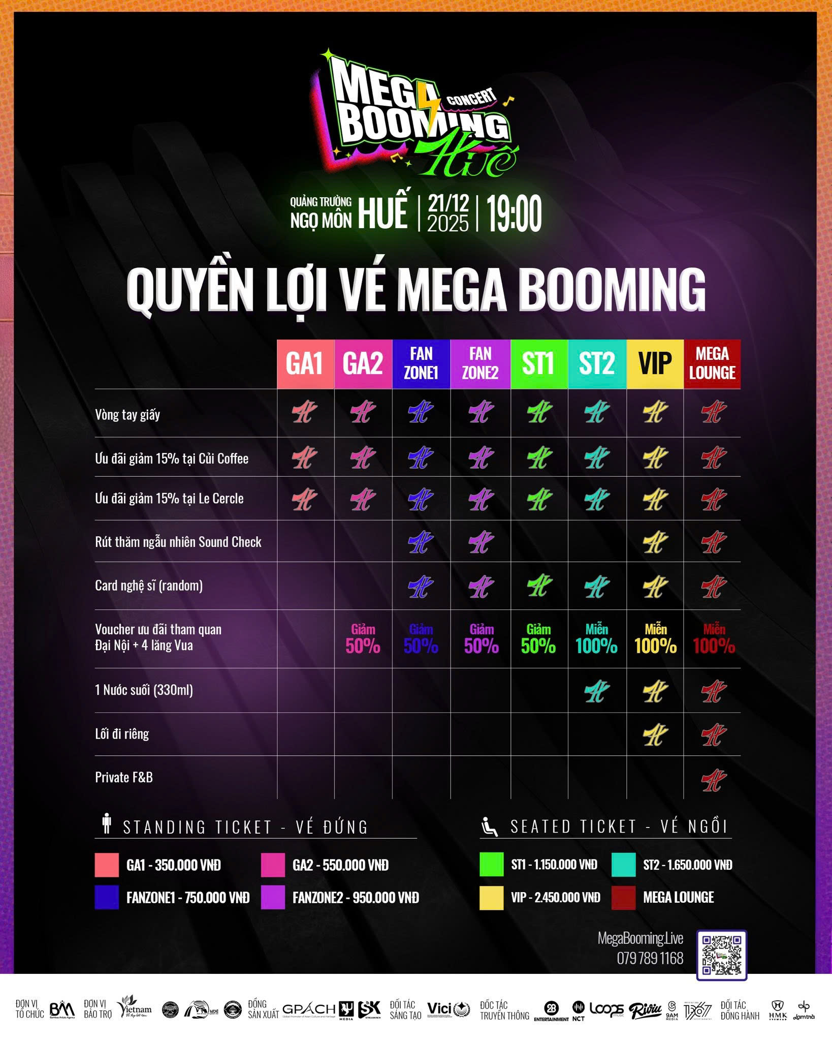 Mega Booming – Huế 2025 là đại nhạc hội quy mô quốc gia do Công ty Cổ phần BamBoo Artists Agency tổ chức, được Sở Văn hóa và Thể thao Thành phố Huế chấp thuận triển khai theo Quyết định số 212/SVHTT-QLVHGD, do Giám đốc Sở Văn hoá và Thể thao Thành phố Huế ký ngày 01/10/2025. Đơn vị bảo trợ: Sở Du lịch Thành phố Huế – Sở Văn hoá và Thể thao Thành phố Huế – Trung tâm Bảo tồn Di tích Cố đô Huế.
