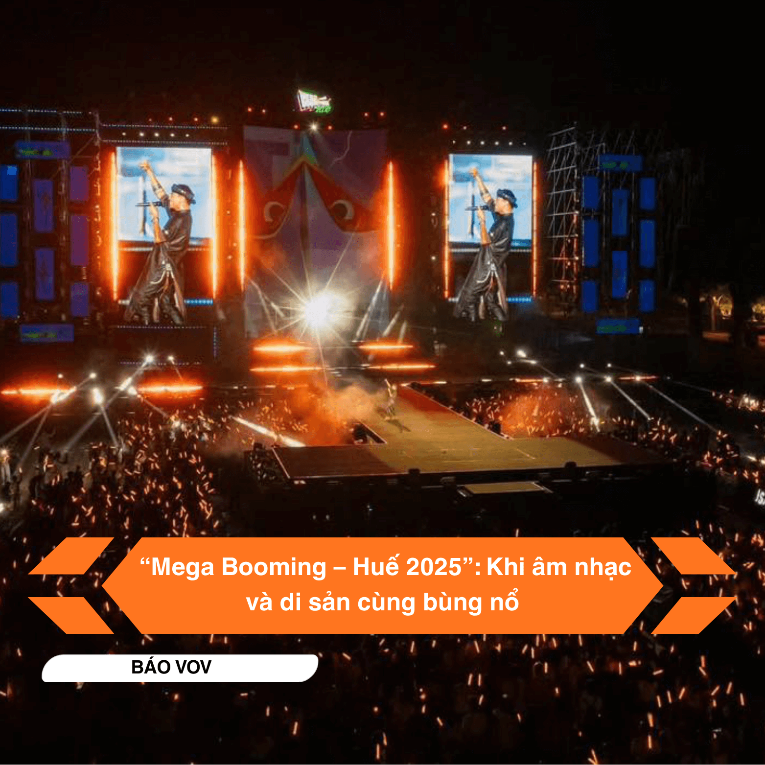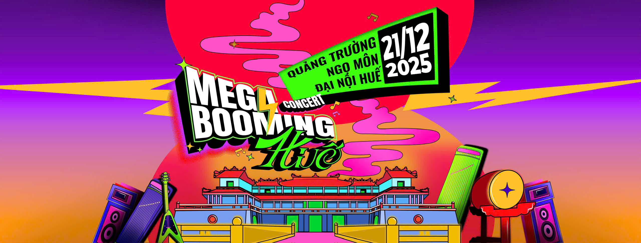 Mega Booming – Huế 2025 là đại nhạc hội quy mô quốc gia do Công ty Cổ phần BamBoo Artists Agency tổ chức, được Sở Văn hóa và Thể thao Thành phố Huế chấp thuận triển khai theo Quyết định số 212/SVHTT-QLVHGD, do Giám đốc Sở Văn hoá và Thể thao Thành phố Huế ký ngày 01/10/2025. Đơn vị bảo trợ: Sở Du lịch Thành phố Huế – Sở Văn hoá và Thể thao Thành phố Huế – Trung tâm Bảo tồn Di tích Cố đô Huế.
